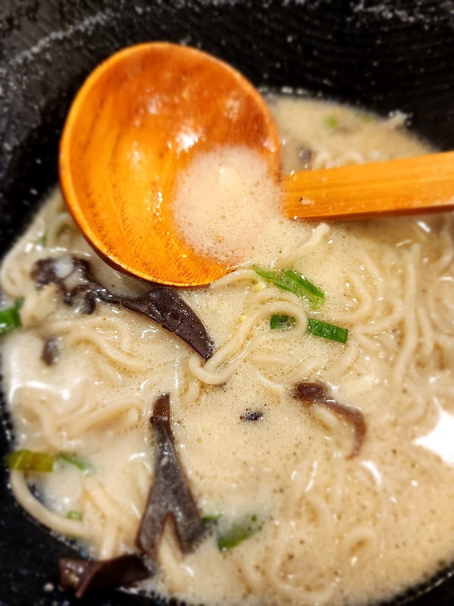 Food is delicious, a bit on the pricey side of japanese restos but worth it. Tonkatsu broth is rich and different from other ramen bars. That day was jammed packed and we had to wait for the line since place is a bit small. Owner and staff were nice and even gave us free maki since we are the last customers. Free peanuts yay!